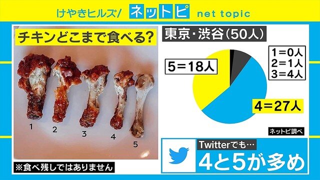 12←育ち悪いんやろなぁ3←普通やな4←鶏肉好きなんやろな