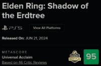 【速報】エルデンリングDLC、メタスコア95でDLC史上最高スコア
