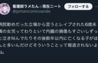 看護師「6歳以下の女児がレイプされて内臓壊れる例しょっちゅう見た」医者「嘘乙。そんなの年に5,6件しかない」