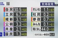 政党支持率「支持政党ない」44% “政党離れ”も NHK世論調査 [少考さん★]