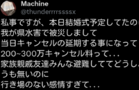 新郎新婦「家が浸水するぐらいの大雨で結婚式できなかった……」サロン「キャンセル料300万な」