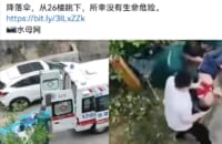 中国のクソガキ、傘をパラシュート代わりにして26階から飛び降り怪我